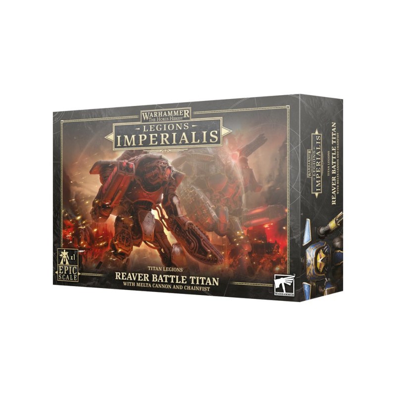 Le Titan Reaver est l'une des classes de Titan de Bataille les plus omniprésentes et les plus destructrices. Cette machine gargantuesque constitue le cœur des Légions Titaniques et tient la ligne ou mène la charge selon la volonté de son Princeps. Qu'il tire de formidables déflagrations thermiques de son canon fuseur ou Volcano, qu'il crache des rayons mortels à l'aide de son destructeur turbo-laser ou qu'il se rapproche pour éventrer les blindés lourds avec son poing tronçonneur rugissant, le Reaver ne laisse pas le choix l'ennemi: fuir ou mourir.